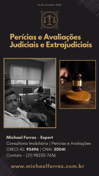 - Asseguramos conformidade legal e transparência em todos os processos, Michael Ferraz Consultor e Perito Avaliador de Bens e Imóveis CRECI-RJ 95496 | CNAI 50041 📱 (21) 98233-7636 | (21) 96940-0909 | (21) 98736-5092 ✉️ E-mail: ferrazimoveisrj@gmail.com 📸 Instagram: michaelferrazperito 📘 Facebook: ferrazexpert 🌐